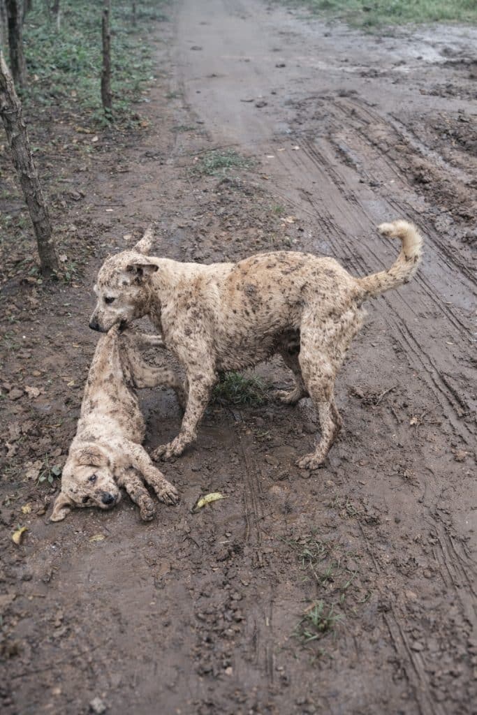 Step by step, the mother dog carries her child along a narrow dirt path. The distance is not short. The ground is uneven. Yet she keeps going, her focus unwavering. What she carries is not only her puppy’s body, but her responsibility—to keep him safe.