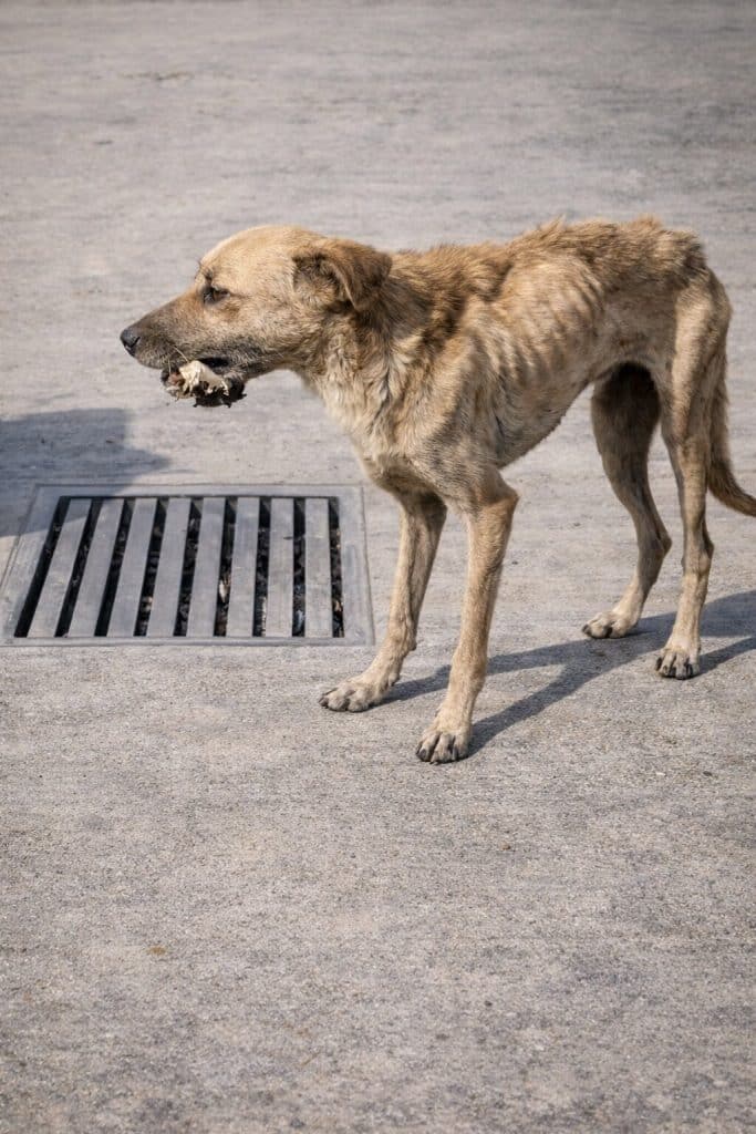 The dog stood still, his mouth forced open by a large piece of bone wedged tightly across his jaw. Every movement looked uncomfortable. Every breath seemed deliberate. He shifted anxiously, unable to free himself, unable to understand what had gone wrong.