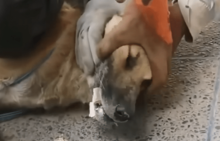 The dog flinched at times, but the people around him stayed gentle, focused on easing his pain—not adding to it.