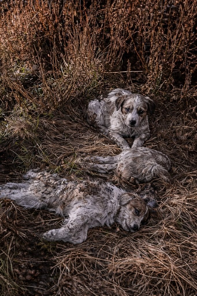 Each puppy was held close, carried carefully away from the empty lot that had offered them no protection.