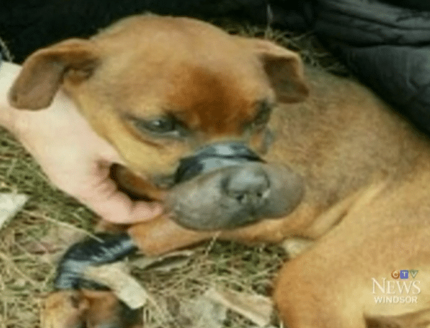 One year ago, in a quiet area near a tire store in Ontario, Canada, a scene unfolded that would leave an entire community shaken. Lying alone in a vacant lot was a seven-year-old dog, later named Justice.