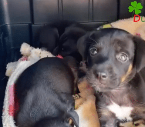 When rescuers arrived, they understood just how fragile the situation was. Ayla’s “shelter” consisted of loosely arranged wooden panels that offered little protection. It was remarkable that she and her puppies had survived for as long as they had. As the rescuers approached, Ayla stood firmly over her babies, barking and watching every movement. It was not aggression—it was motherhood.