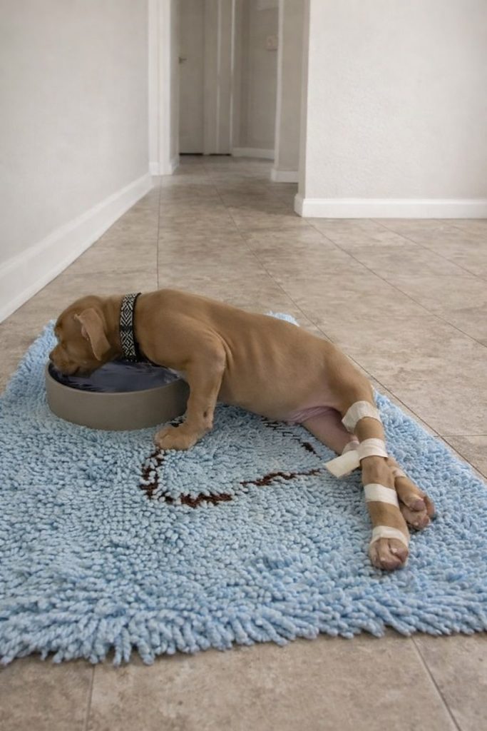 Compassionate people stepped in and brought the three puppies to a shelter, where fear was replaced with safety, nourishment, and care. It was the first turning point—but not the end of Hugo’s challenges.