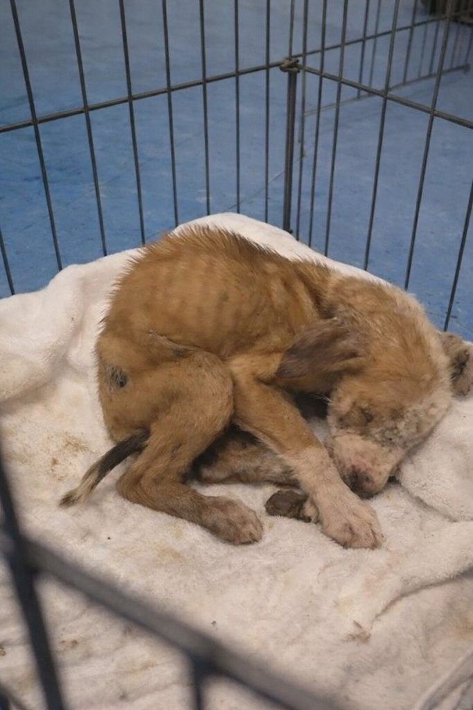 Curled tightly against the thin cardboard was a tiny Pit Bull puppy. He was painfully thin, his ribs visible beneath fragile skin. Patches of fur were missing, and his small body looked exhausted, as if it had been surviving on far less than it needed for far too long. Yet when Shannon leaned closer, his eyes lifted to meet hers. There was fear—but also a quiet determination to keep going.
