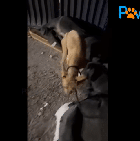 When rescuers first saw him near a row of dumpsters in a quiet part of Texas, he looked exhausted beyond words. His body was painfully thin, his movements slow and uncertain. Standing required visible effort, and every step made his legs tremble. It was clear that he had been struggling for a long time, holding on with what little strength remained.