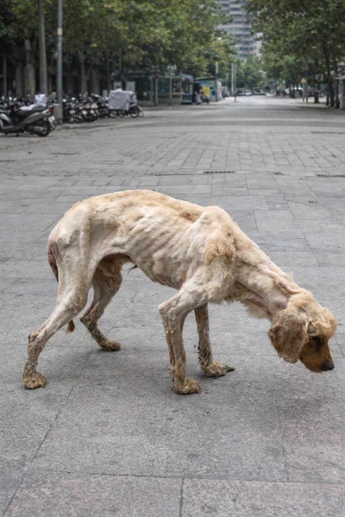 This dog had been surviving on little for weeks, perhaps longer.