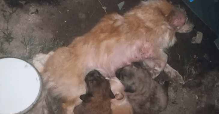 After the attack, Amal was left unable to move her lower body. She collapsed onto the grass, paralyzed and helpless. For hours, she remained there—unable to stand, unable to escape—yet she did not abandon her puppies. Despite her pain and fear, Amal stayed close, shielding her three newborns as best she could, even as hunger and exhaustion set in.