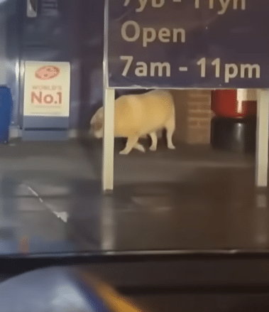 Late at night, when the supermarket lights glowed against the dark parking lot, an elderly dog stood patiently in front of the automatic doors. He was large and heavyset, his body slow and tired, his legs trembling slightly beneath him. He didn’t bark. He didn’t beg. He simply stood there, watching people come and go as the doors opened and closed again and again.
