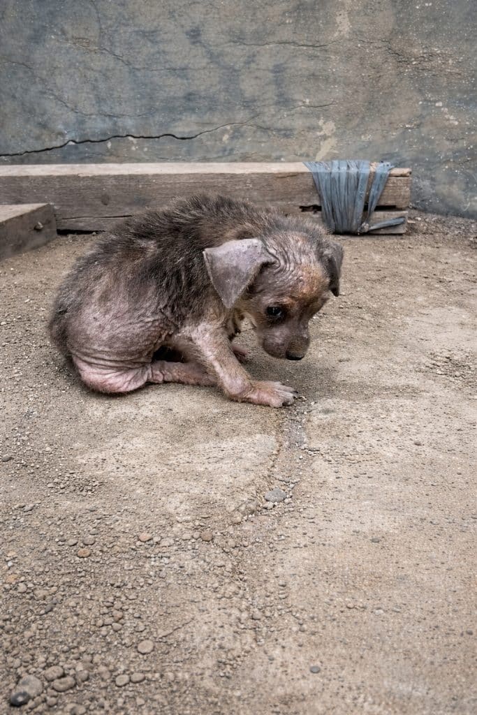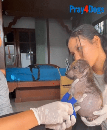At the veterinary clinic, the extent of Lulu’s suffering became clear. Her abdomen was swollen due to a severe parasite infection. Her skin was inflamed, dry, and painfully itchy from prolonged neglect. Both of her front legs were visibly deformed, curved in a way that made standing and walking uncomfortable. But beyond the physical injuries, there was something deeper. Lulu’s eyes revealed longing and fear at the same time—a desperate wish for affection paired with the instinct to stay guarded.