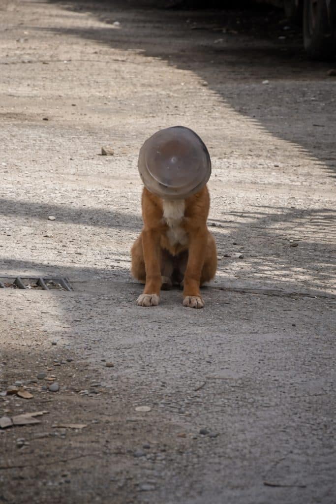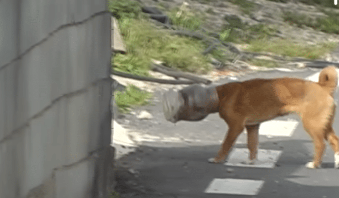 In a small village in South Korea, a lone stray dog moved cautiously through familiar paths, avoiding people and searching for scraps. At first glance, nothing seemed unusual—until villagers looked closer. A large plastic container was tightly stuck over the dog’s head, rigid and long enough to completely block his mouth. He could not eat. He could not drink. And for weeks, no one realized how long he had been surviving like this.
