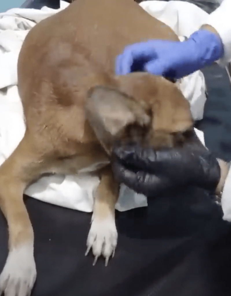 When the swelling subsided, the extent of her hardship became painfully clear. Beneath the enlarged belly was a body that had been severely neglected—thin, frail, and lacking proper nourishment. Her ribs and spine were visible, but her spirit remained gentle. Every time a veterinarian spoke to her softly, Juanita responded with a faint wag of her tail, as if letting them know she understood she was safe now.