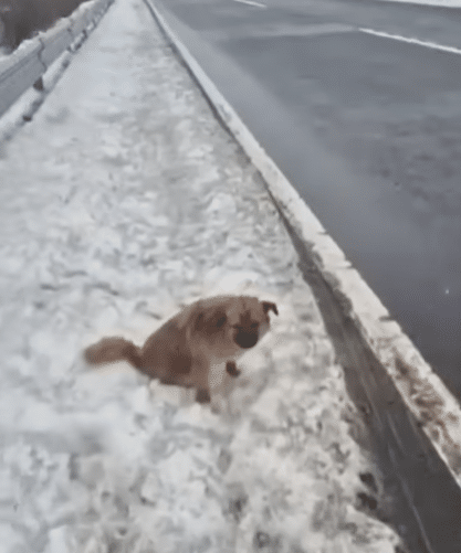Heavy snow covered the ground, turning the roadside into a silent stretch of ice and white. Sitting near the edge of the frozen road was a small dog named Vicky. Her body trembled uncontrollably, not only from the cold but from pain. She looked thin and fragile, her eyes filled with confusion and quiet suffering. Her back legs appeared badly injured, leaving her unable to stand or move away from danger.