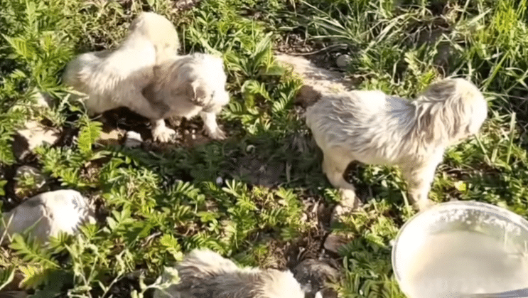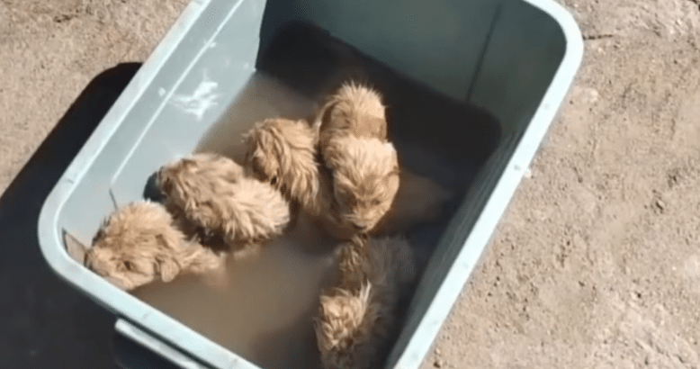 As he held the first puppy, the driver heard faint cries nearby. Following the sound, he discovered a discarded cardboard box by the roadside. Inside the box—and hidden in the surrounding grass—were several more puppies. Sadly, one had already passed away. Faced with the harsh reality, the driver gently gathered the five remaining puppies and made a quick decision: he would not leave them behind.