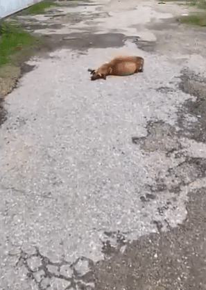 When rescuers arrived, Greta was lying motionless on the pavement. Her body was painfully thin, her strength nearly gone. She couldn’t stand on her own, let alone walk. Every breath looked like effort. It was clear she had been suffering for a long time before being abandoned.
