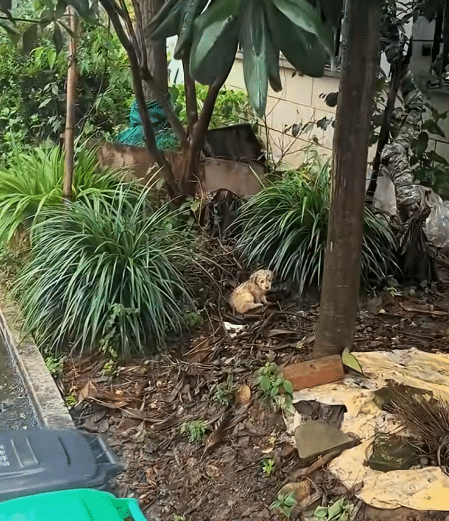 His body was soaked through. Mud clung to his fur. He was curled tightly into himself, as if trying to make his small frame even smaller. He didn’t cry. He didn’t run.
