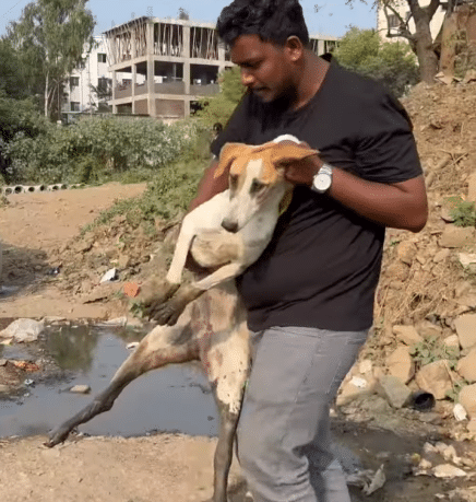 When the rescue organization Saahas received a report about a dog stranded near the roadside, one of their team members responded immediately.