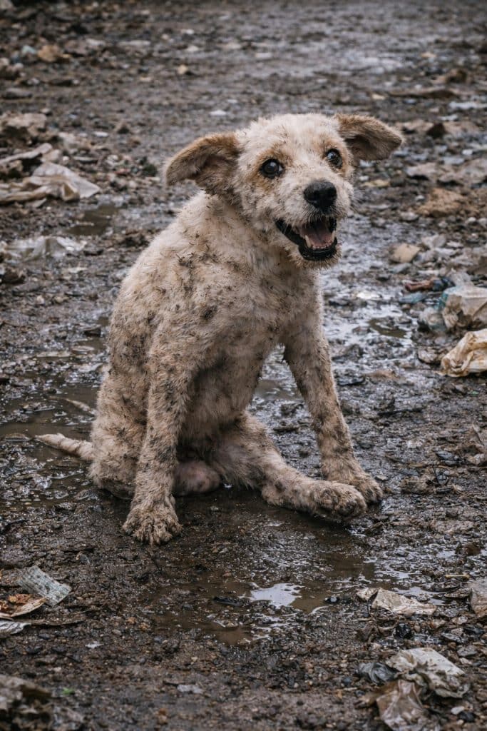 When Sunsimi was finally found, he did not cry out. He simply looked up — thin, exhausted, and unable to move his back legs. For 145 days, he had been left tied in one place, dragging his small body across the ground whenever he needed to shift position.
