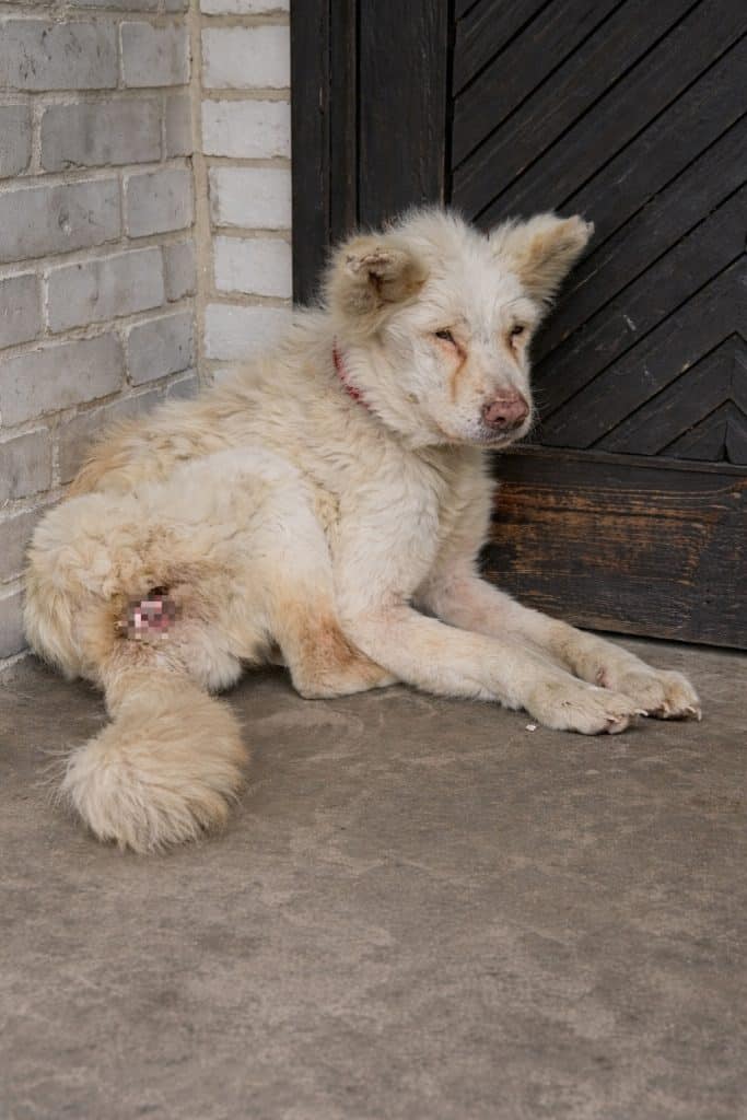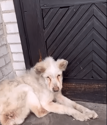 A white dog lay curled on the cold tiled steps outside the house. She was not allowed inside. There was no bedding. No shelter from the night air. Her body was thin, and her eyes were wet from crying.