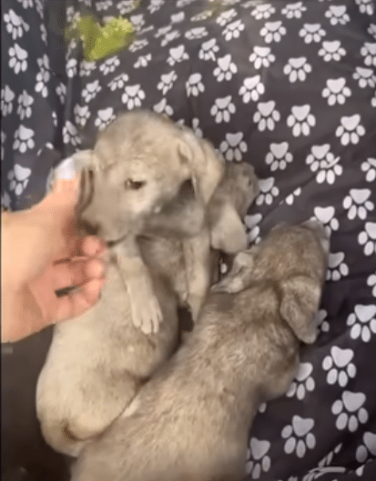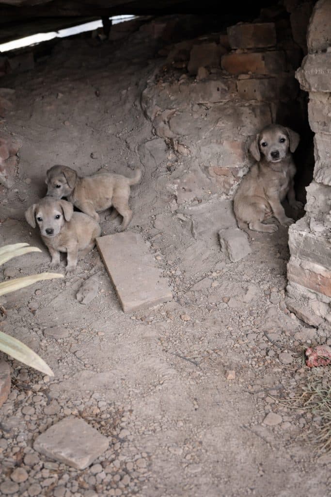The puppies were hiding deep beneath the base of a massive kiln, pressed into the shadows. When the rescuers first saw them, they barely looked alive.