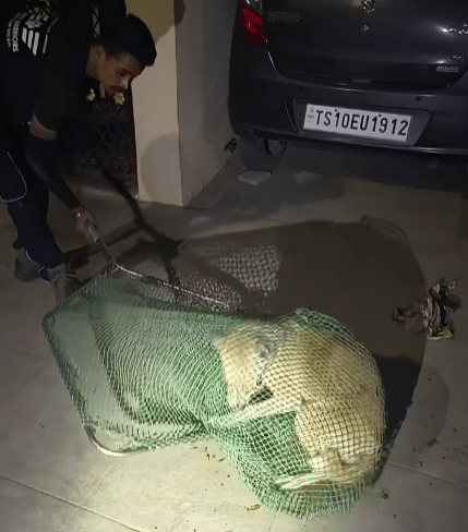After several careful attempts, the rescuer gently guided the dog into the net. For a brief moment, everything seemed still.