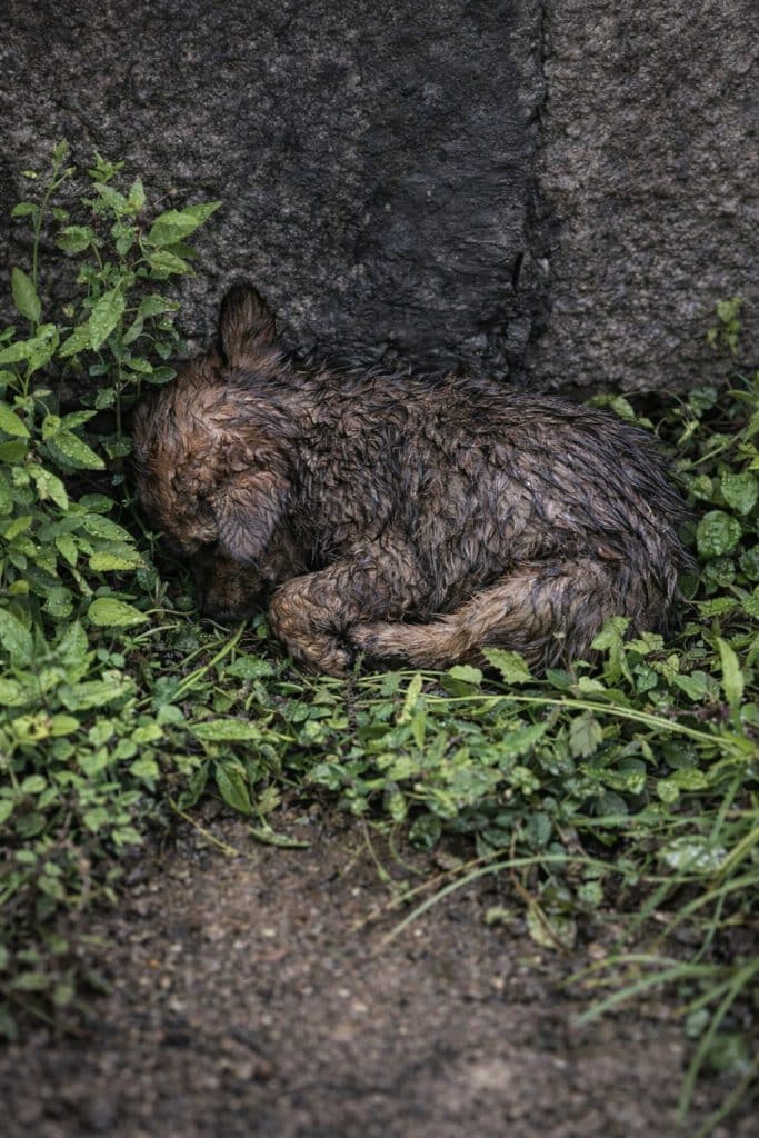 He had likely been lying there for some time — hungry, exhausted, and alone.