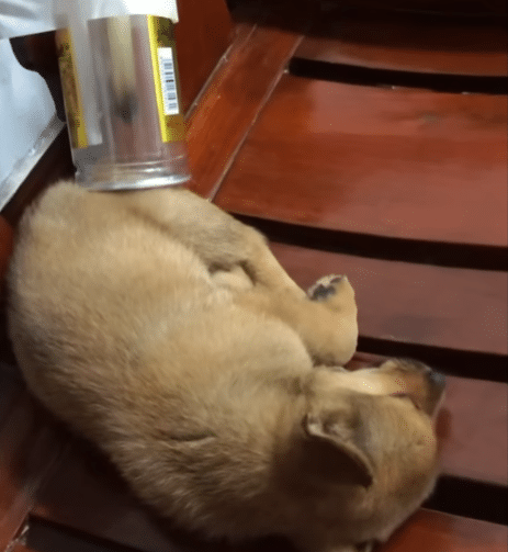 On the edge of a roadside lawn, they noticed something unusual — a tiny puppy lying motionless in the grass.