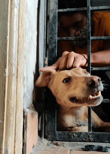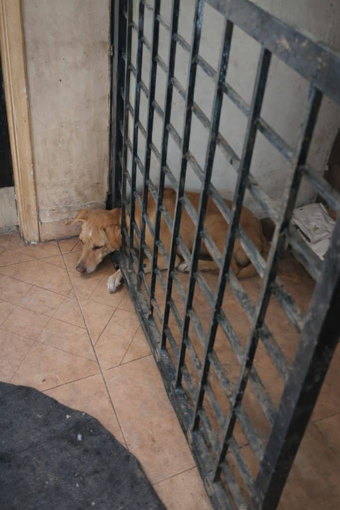 At first, all anyone could see was a flash of golden-brown fur pressed tightly against a metal gate.