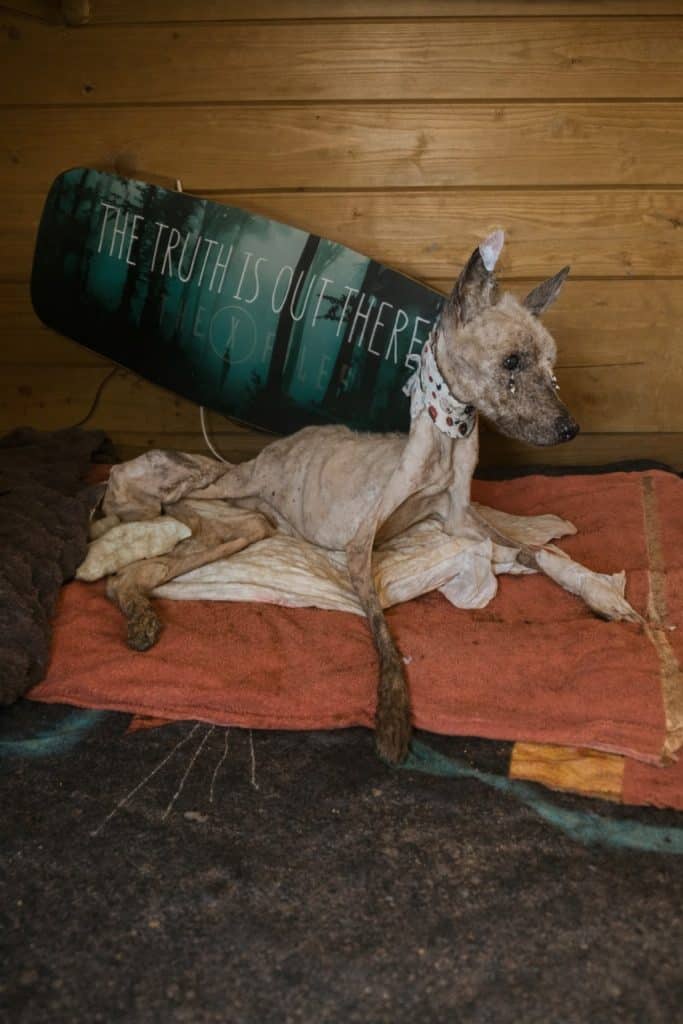 Someone had hidden bait on the hook. A starving dog had no way of knowing. In his hunger, he bit down — and the metal tore into his flesh. For nearly a month, he had been unable to eat properly. Infection had spread. His body had wasted away.