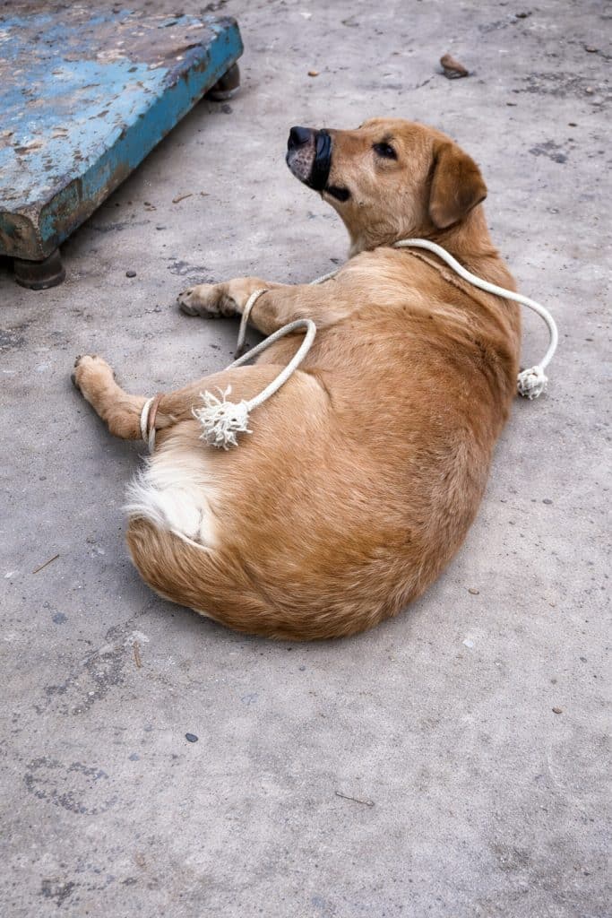 Nearby stood a narrow metal cage holding several other dogs, waiting silently. The atmosphere was heavy. The future uncertain.