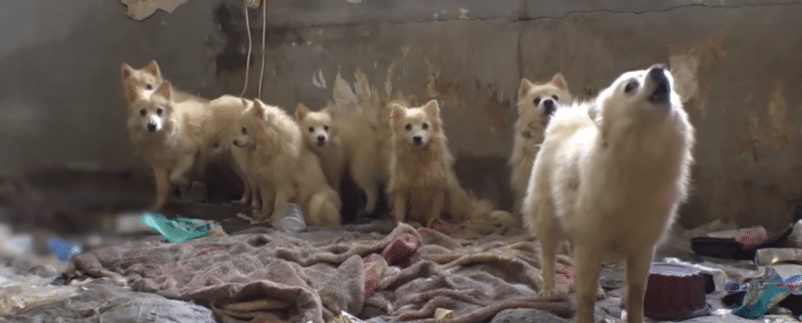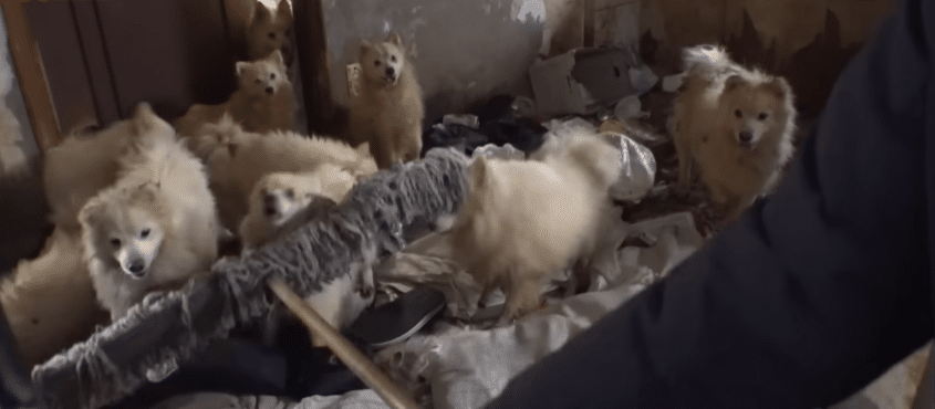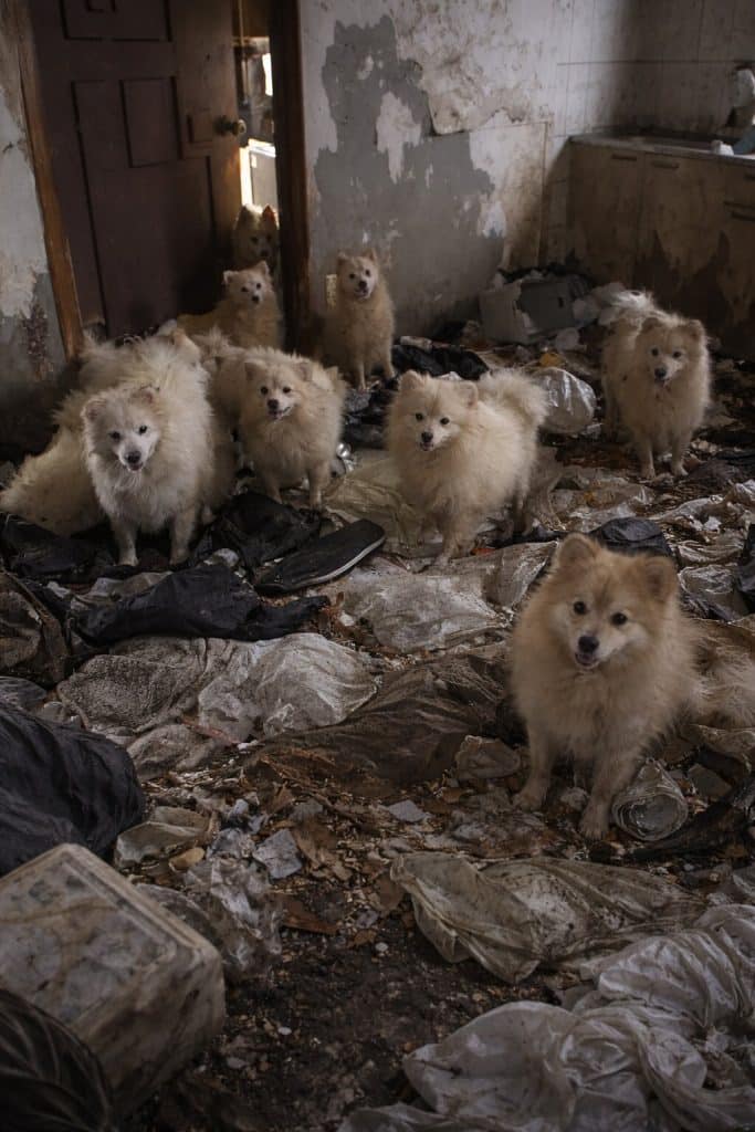 Among them were 18 small Spitz dogs still alive, huddled together in exhaustion and fear.