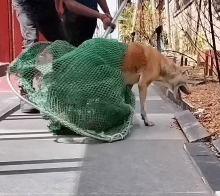 One rescuer gently encouraged him from one end of the trench, moving slowly and deliberately. At the opposite end, team members waited with a rescue net ready.
