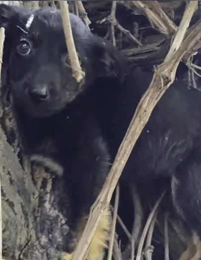 Video: The Terrified Puppy Hiding Under Branches Finally Felt Safe in Someone’s Arms