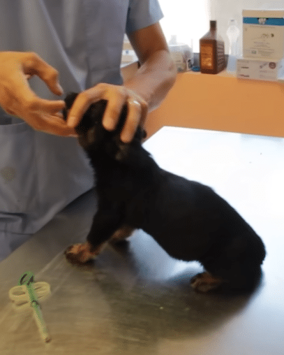 At the veterinary clinic, her tiny body was examined with care.