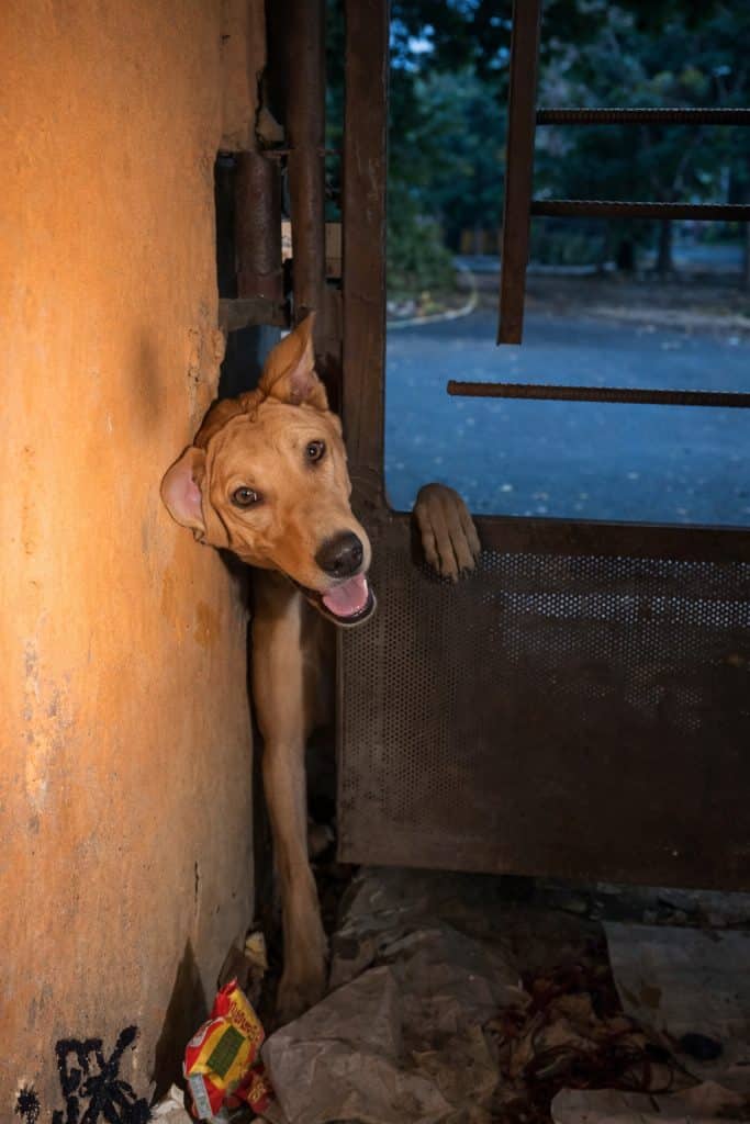 Somewhere between a concrete wall and a heavy iron gate, a dog was crying out. Neighbors couldn’t see her at first — only hear the sharp, panicked whimpers that broke the stillness of the night.