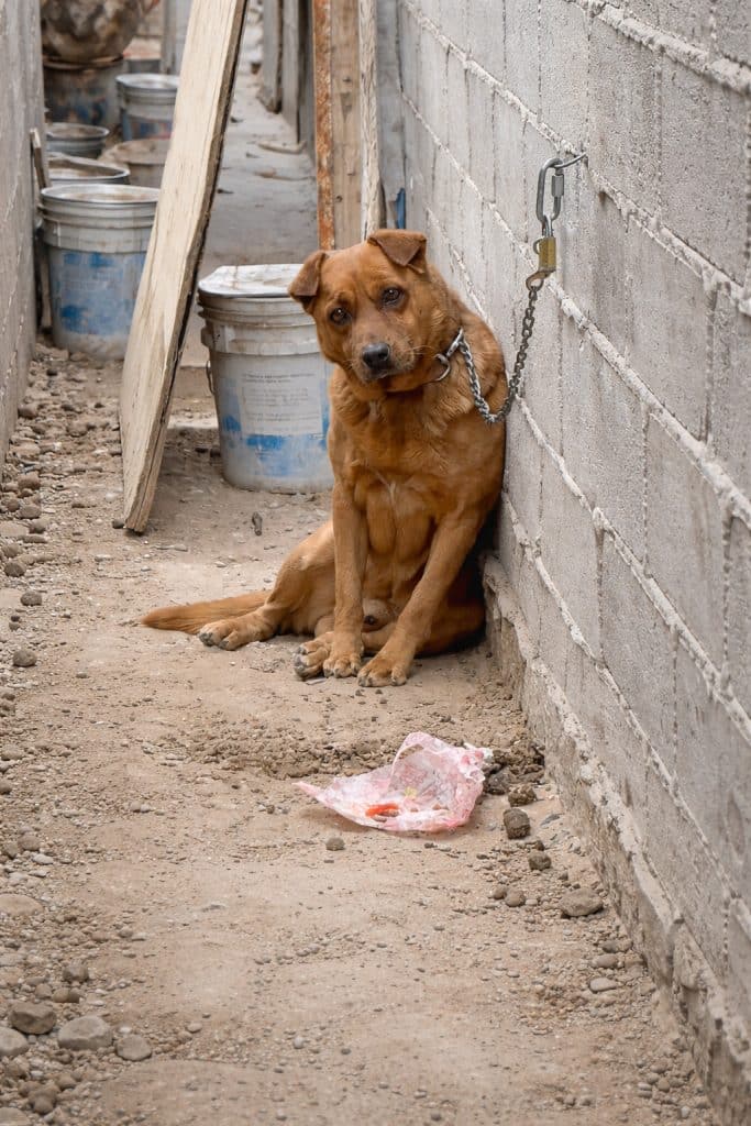 He belonged to a neighbor who did not treat him kindly. According to the subtitles, food and water were inconsistent. Harsh words — and worse — were common. But what seemed to weigh on him most was the chain.