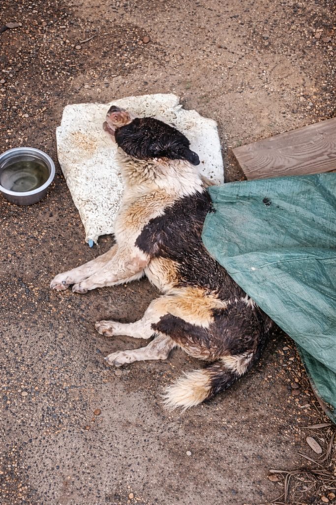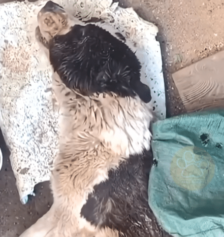 He was lying on cold, muddy ground, motionless beneath a gray sky. His large frame—meant to be strong and powerful—looked impossibly fragile. Though still young for a Central Asian Shepherd, his body had already been worn down by something no animal should endure.