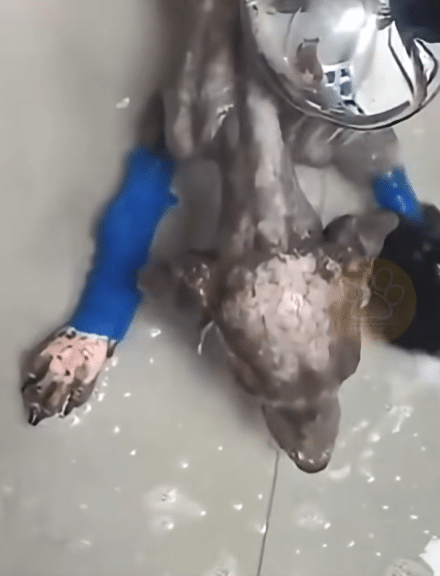 He was too weak to stand under running water, so he lay on cool tile while caregivers carefully washed away layers of damaged skin and dirt. A soft stream of water and mild cleanser moved across his fragile body.