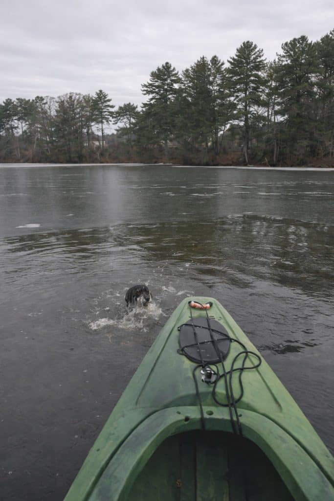 The icy water slapped against the sides of the kayak as he navigated carefully through floating slabs of ice. Getting too close could tip the boat. Waiting too long could cost the dog his life.
