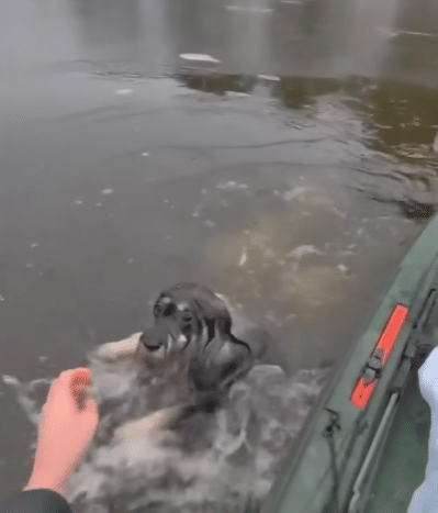 The man leaned forward, stretched out his arm, and gripped the thick fur at the dog’s neck. With one determined pull, he lifted the heavy, soaked body from the freezing water and into the kayak.