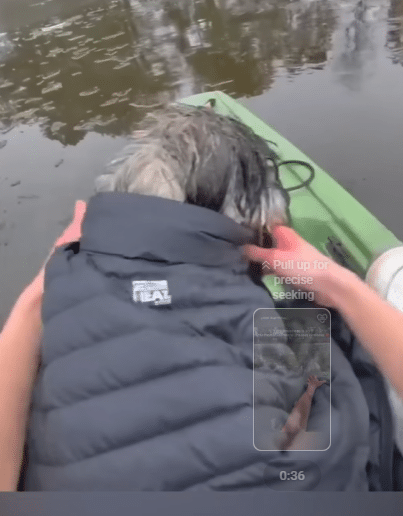 Barney lifted his head slightly at the familiar voice. The kayak edged closer to land where his owner waited, helpless moments earlier, now watching hope return stroke by stroke.