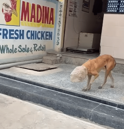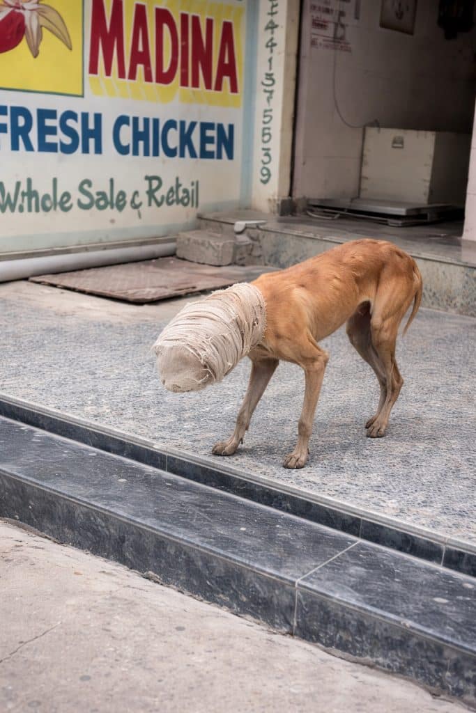A thin brown dog was stumbling through the streets with his entire head trapped inside a large, cloudy white plastic jar. He couldn’t see properly. He couldn’t eat. He could barely move without crashing into walls or obstacles.