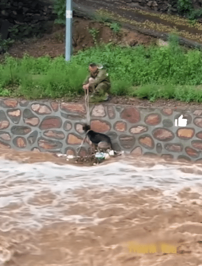 Just a soaked dog, a length of rope, and a man who refused to look away.