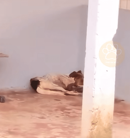 His body was curled tightly, as if trying to protect what little strength he had left. He could not rise. He could not call out. Only his eyes moved — slowly, faintly — carrying a silent plea that someone might notice him before it was too late.