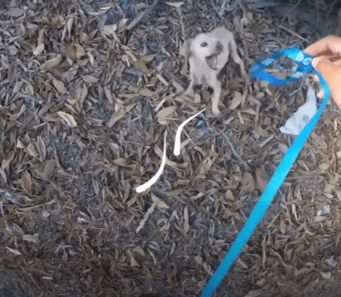 When the man approached gently with a leash, the tiny dog reacted the only way he knew how.