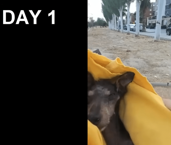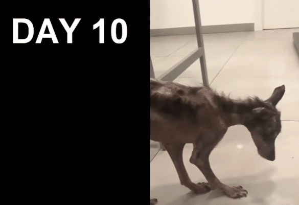 By day 110, Kong was almost unrecognizable from the skeletal dog found on the street.
