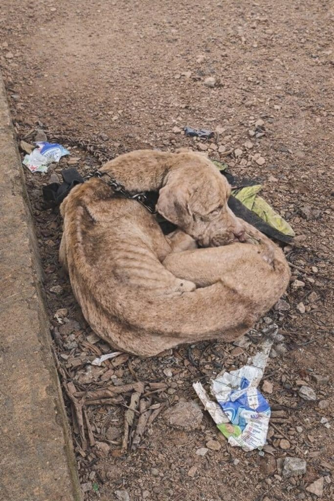 Her body was painfully thin — little more than bones beneath fragile skin. She barely lifted her head. Her breathing was shallow.