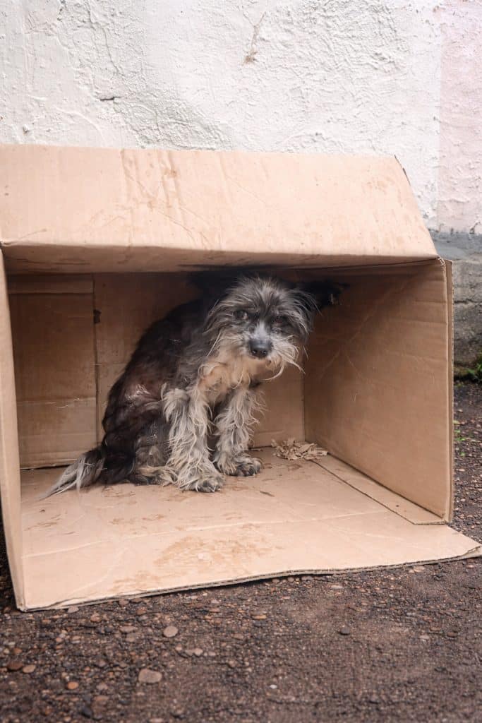 Someone noticed her condition and contacted a rescue team. The report described a small, fragile dog barely holding on.