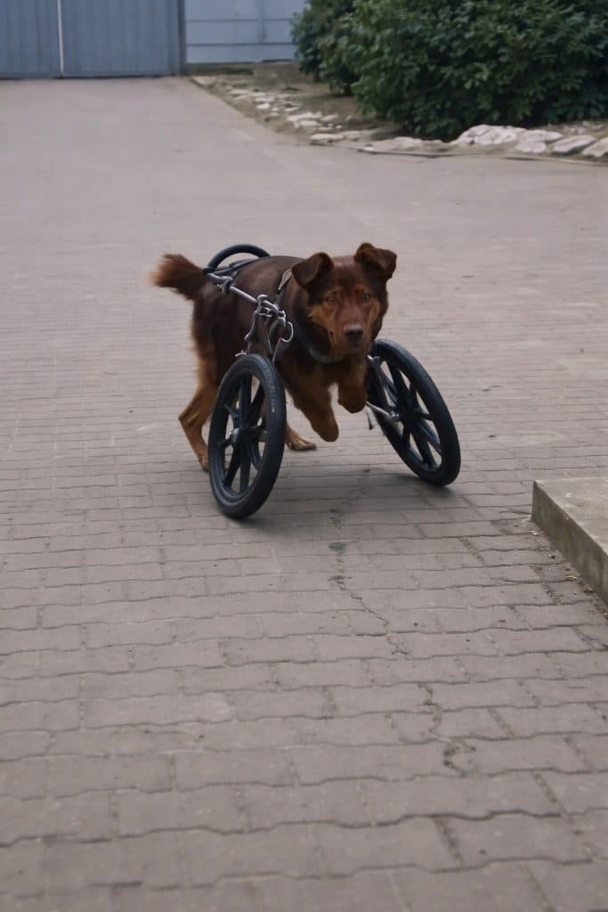To restore Jack’s mobility, a custom wheelchair was designed specifically for him — engineered to support the absence of his front legs while allowing his back legs to propel him forward.