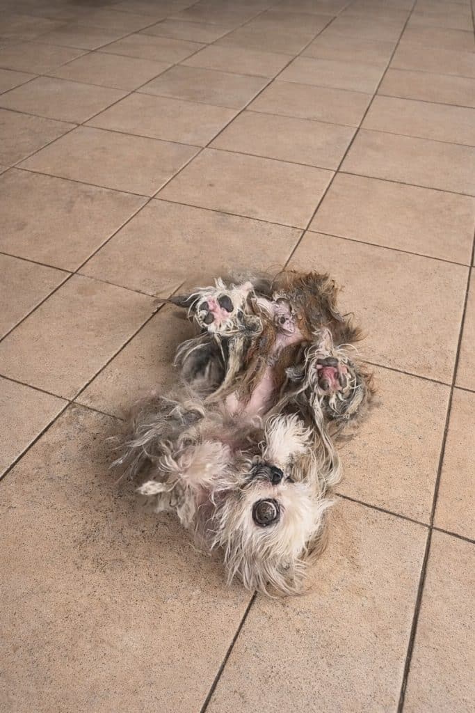 Her matted fur had to be shaved away carefully.
