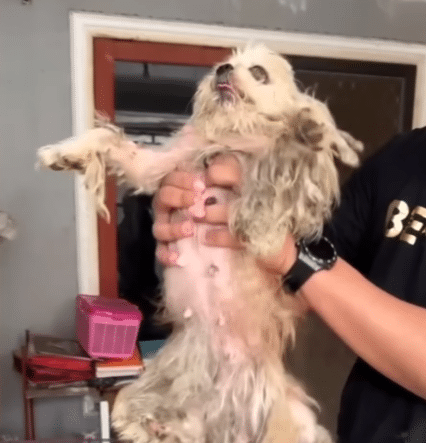She was painfully thin — bones pressing sharply beneath fragile skin. Her fur had grown into thick, hardened clumps, packed tightly with mud and debris. It formed what rescuers described as an “armor” — not for protection, but from prolonged neglect.